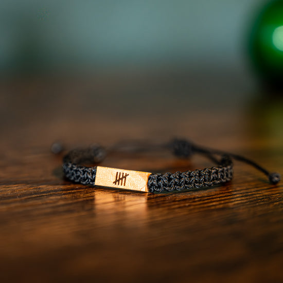 The five tally marks represent the passage of time and the milestones achieved throughout your five years together. Traditionally, the 5th anniversary is celebrated with gifts made of wood, symbolizing the strength and enduring nature of a relationship that has weathered early storms and grown deeper roots. Wear this bracelet as a reminder of your love, commitment, and the beautiful journey you've embarked on together.
