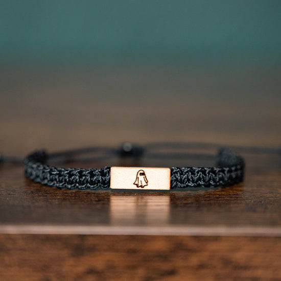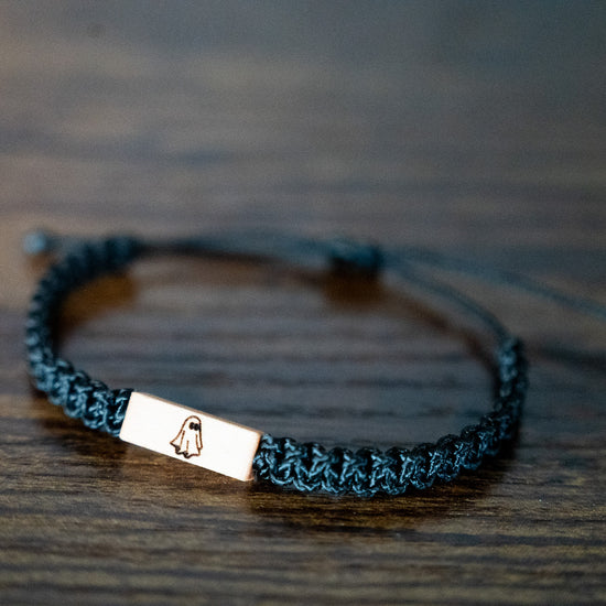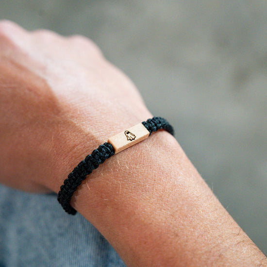 Celebrate your love for all things spooky with this limited-edition Ghost Macramé Bracelet. This fun, seasonal design features a classic ghost outline, meticulously engraved into a beautiful piece of reclaimed Maple Burl wood. It's the perfect subtle Halloween accessory, a great gift for fans of the supernatural, or a fun treat for an October birthday.