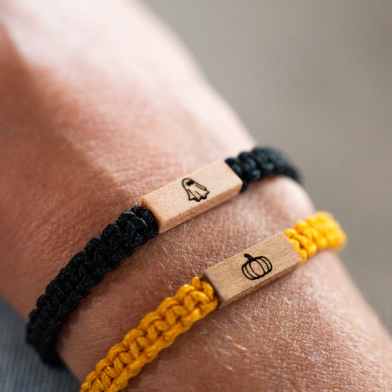 This bracelet features a durable, adjustable macramé cord, ensuring a comfortable fit for most wrists (6-10 inches). The cord is hand-knotted using high-quality paracord, known for its strength and durability. Water-resistant and built for everyday wear, it's ready for all your fall adventures, from pumpkin patches to costume parties. Choose from 15 vibrant colors to match your seasonal style.