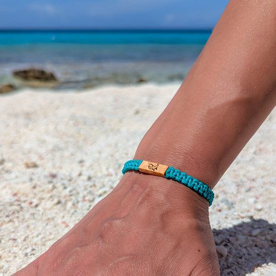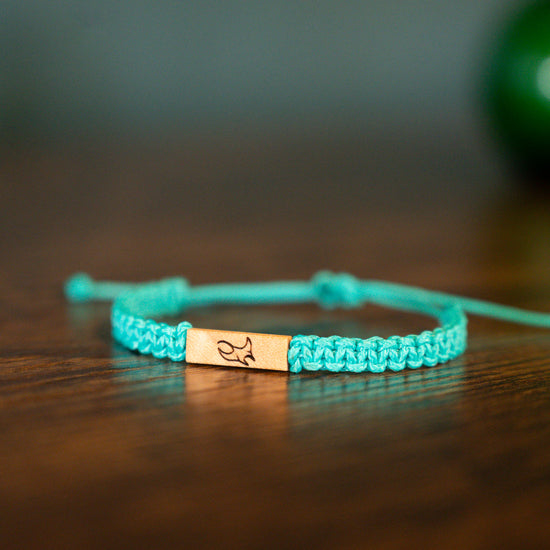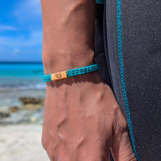 This bracelet features a durable, adjustable macramé cord, ensuring a comfortable fit for most wrists (6-10 inches). The cord is hand-knotted using high-quality paracord, known for its strength and water-resistant properties, making it ideal for everyday wear and all their aquatic adventures. Choose from 15 vibrant colors.