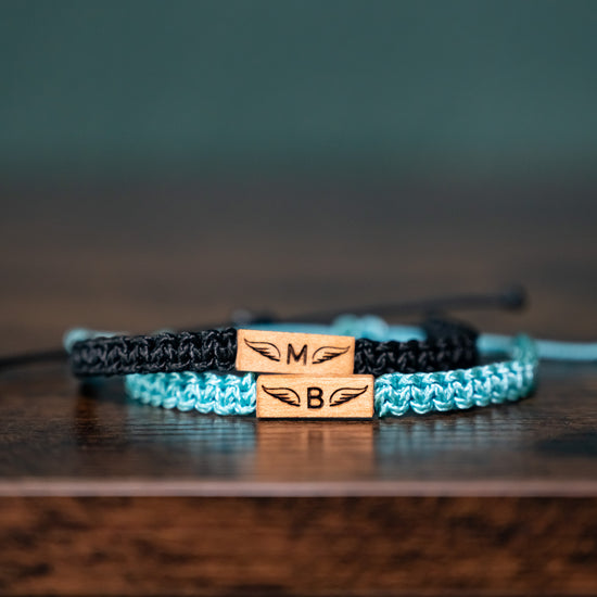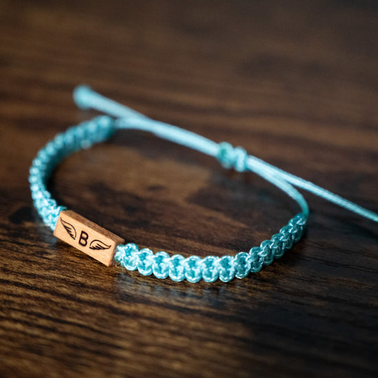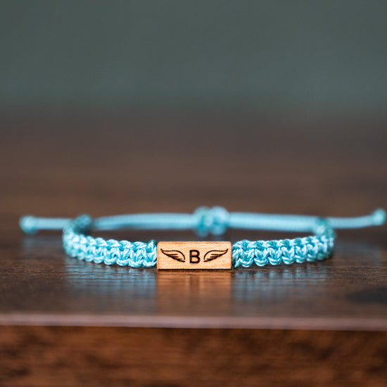 This comforting bracelet is a reminder of a loved one watching over you. A pair of angel wings surrounds a single initial, serving as a beautiful symbol of guidance and protection. Expertly burned onto a reclaimed wood piece, this bracelet is a heartfelt tribute to carry with you every day.