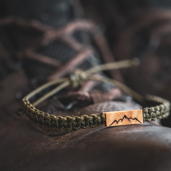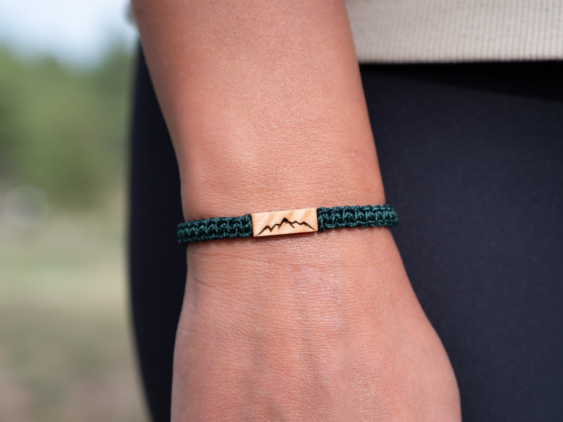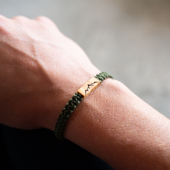 Add a personal touch to your mountain range bracelet with a custom engraving on the reverse side. We carefully prepare each piece before expertly burning your design into the wood. Personalize it with initials, a significant date, a name, or a word that holds meaning.