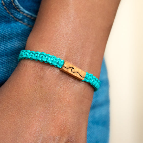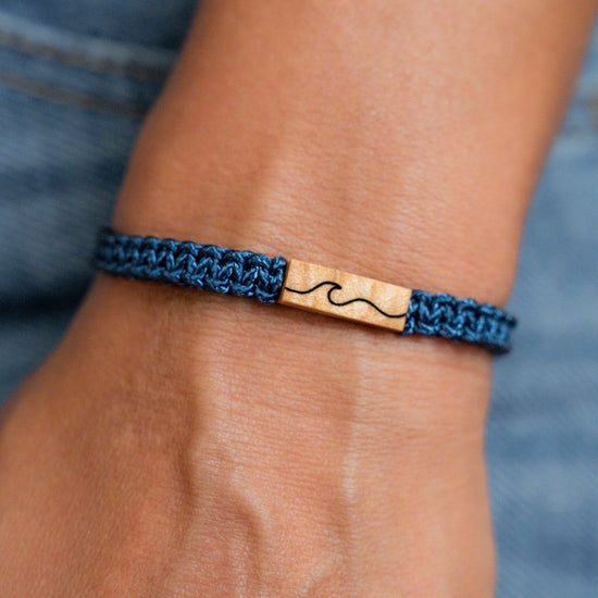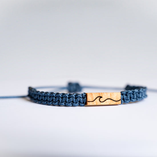 Embrace the calming rhythm of the ocean with this handcrafted Ocean Wave Macramé Bracelet. This design features a minimalist portrayal of a wave, meticulously burned into a piece of reclaimed maple wood. The reversible design lets you feature the wave on one side, while the other can be personalized with a message, name, or date. It's the perfect accessory for beach lovers, surfers, and anyone who finds peace and inspiration in the sea.