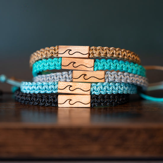 Add a personal touch to your wave bracelet with a custom engraving on the reverse side. We carefully prepare each piece before expertly burning your design into the wood. Personalize it with initials, a significant date, a name, or a word that holds meaning.