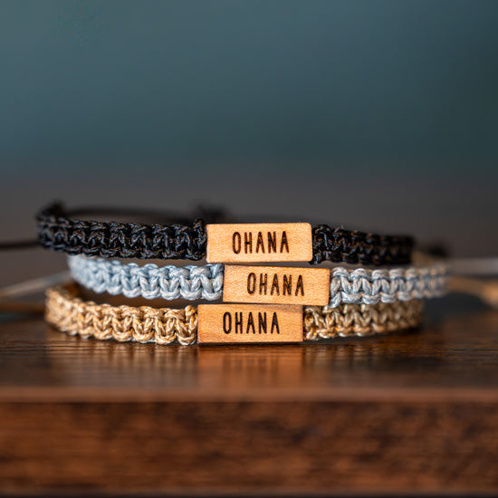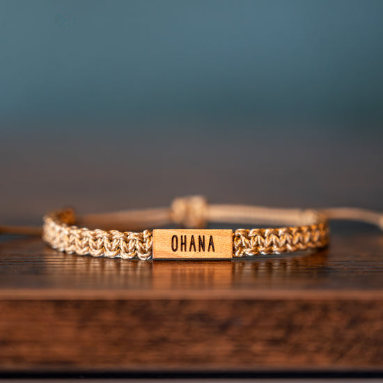 'Ohana' is a powerful symbol of love, connection, and belonging. It's a heartfelt piece that celebrates the notion that no one gets left behind or forgotten. This bracelet serves as a constant, stylish reminder of the ties that matter most.