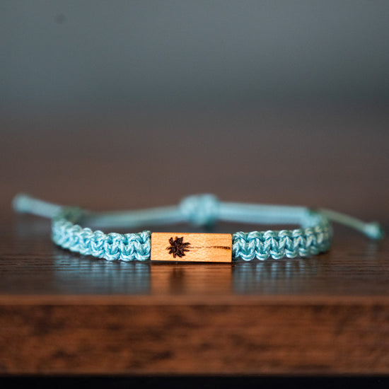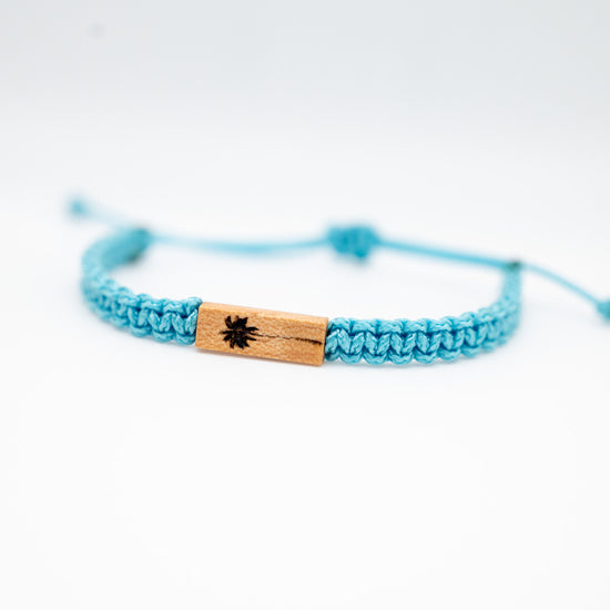 This bracelet features a durable, adjustable macramé cord, ensuring a comfortable fit for any wrist. The cord is hand-knotted using high-quality paracord, known for its strength and durability, making it ideal for everyday wear and tropical getaways.