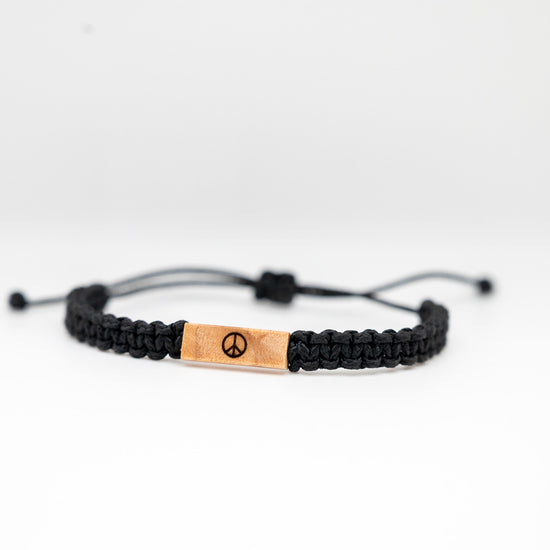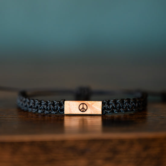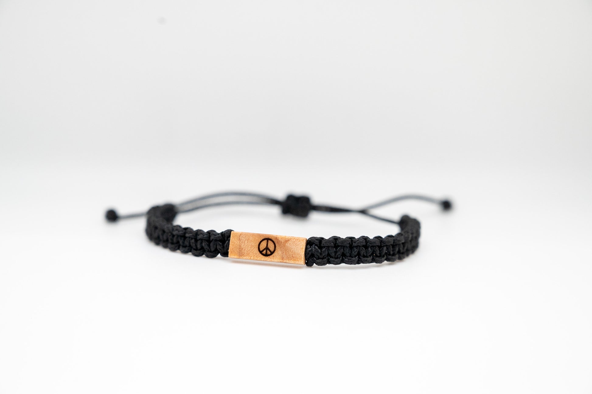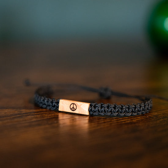 The front of the wooden piece features our signature peace sign. Add a personal touch to this bracelet with a custom engraving on the reverse side. Personalize it with initials, a significant date, or a short message that holds meaning.