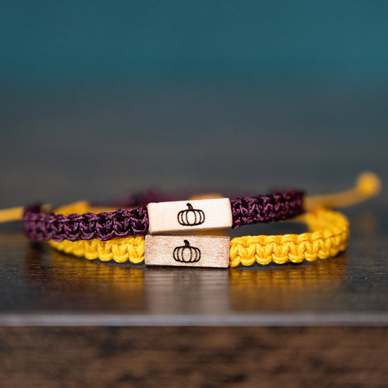 Add a personal touch to this pumpkin bracelet with a custom engraving on the reverse side. We carefully prepare each piece of Maple Burl wood before expertly burning your design. Personalize it with initials, a meaningful fall date, or a fun word to create a one-of-a-kind keepsake.
